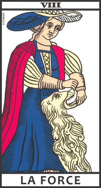 Nous pouvons constater qu’ici ces deux éléments se conjuguent harmonieusement et pacifiquement. La femme n’a pas peur et le lion ne l’agresse pas. L’EAU joue ici pleinement son rôle d’amour et d’acceptation mais sans nier la nécessité d’action opportune (le fait de tenir les mâchoires). Le Lion lui se laisse faire, il n’agresse pas, il sort de tout principe égoiste.