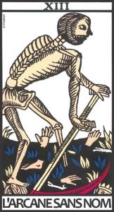 Mais l’arcane finale est bien plutôt l’ARCANE SANS NOM, représentant un Egyptien mort labourant dans le paradis, au côté de ceux que la mort a décomposé.